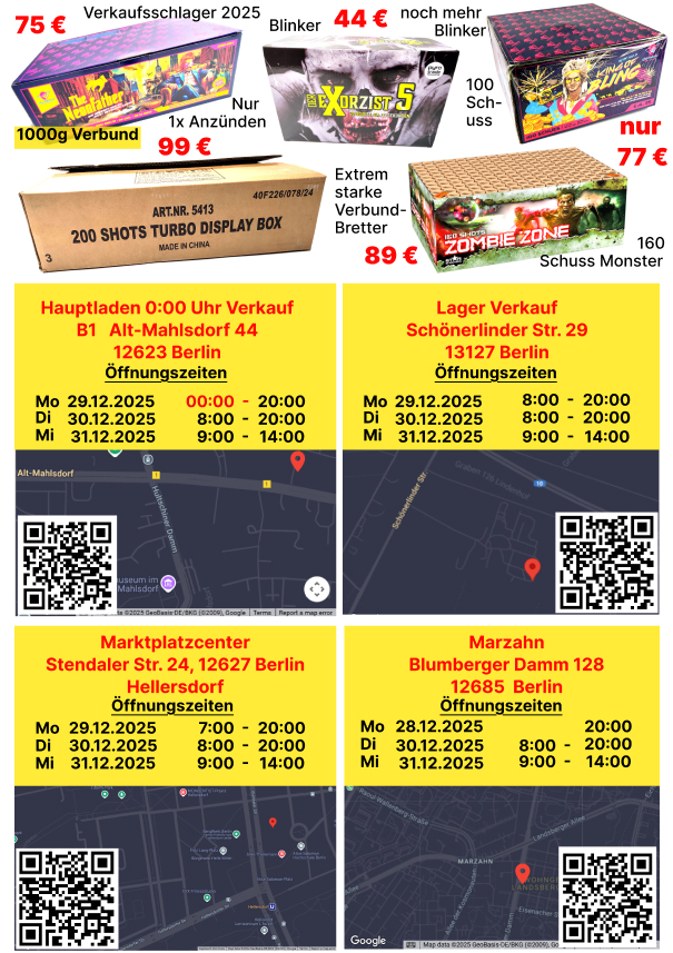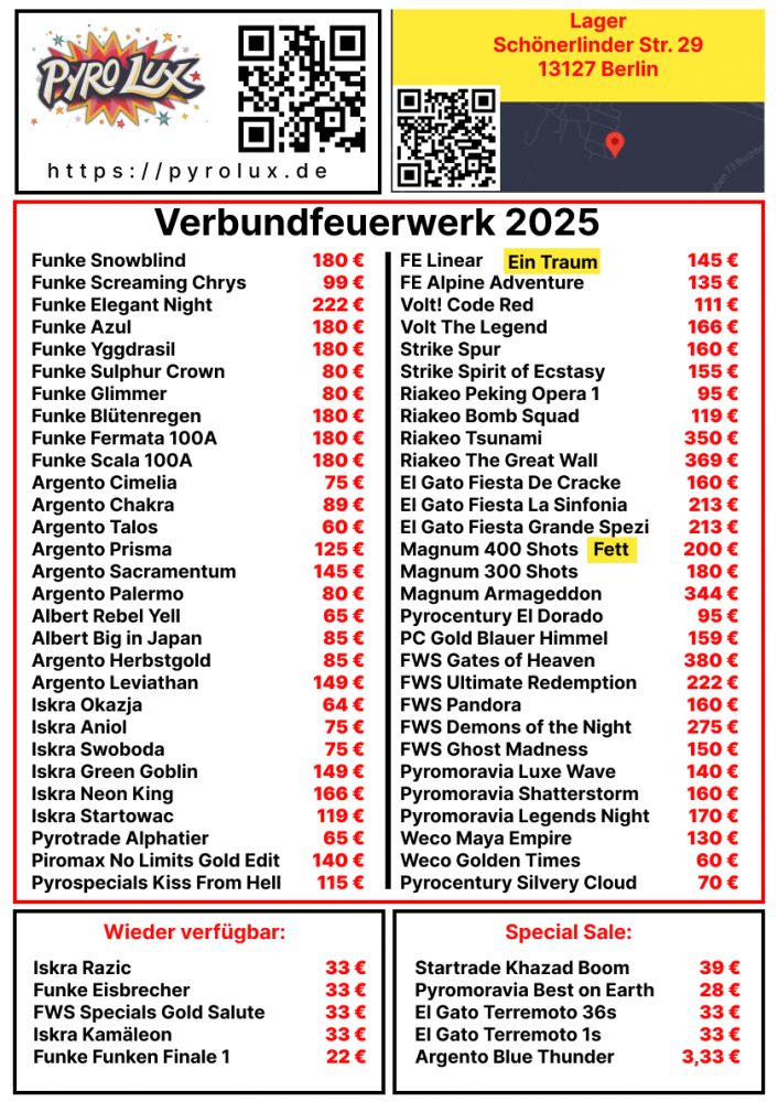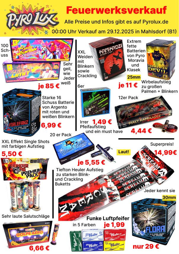 Wir wünschen Dir ein frohes neues Jahr und hoffen Du hattest ein phantastisches Silvester. Wir kümmern uns so schnell es geht um Alle Anfragen, Reklamationen und Erstattungen. Mit besten Grüßen, Dein Pyrolux Team Verwerfen