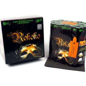 13 Schuss in 30mm. Titangold-Palmen mit Verwandlung zu silbernen Spitzen, darunter Feuertöpfe mit Verwandlung von Goldbrokat zu Silber, durchzogen von Goldflimmer-Schweifkometen.