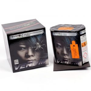 13 Schuss in 30mm. Blackboxx Venom. Goldene Cycas-Palmen mit roten und blauen Spitzen und langem Brokatschweif aufsteigend.