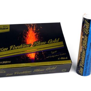 Die 5m Fontäne Blau-Gold von Funke ist eine große, raucharme Fontäne mit 45 Sekunden Brenndauer und bis zu ca. 5m Effekthöhe. Hierbei Handelt es sich um einen T-1 Artikel. Dieser darf das ganze Jahr über, erworben werden.