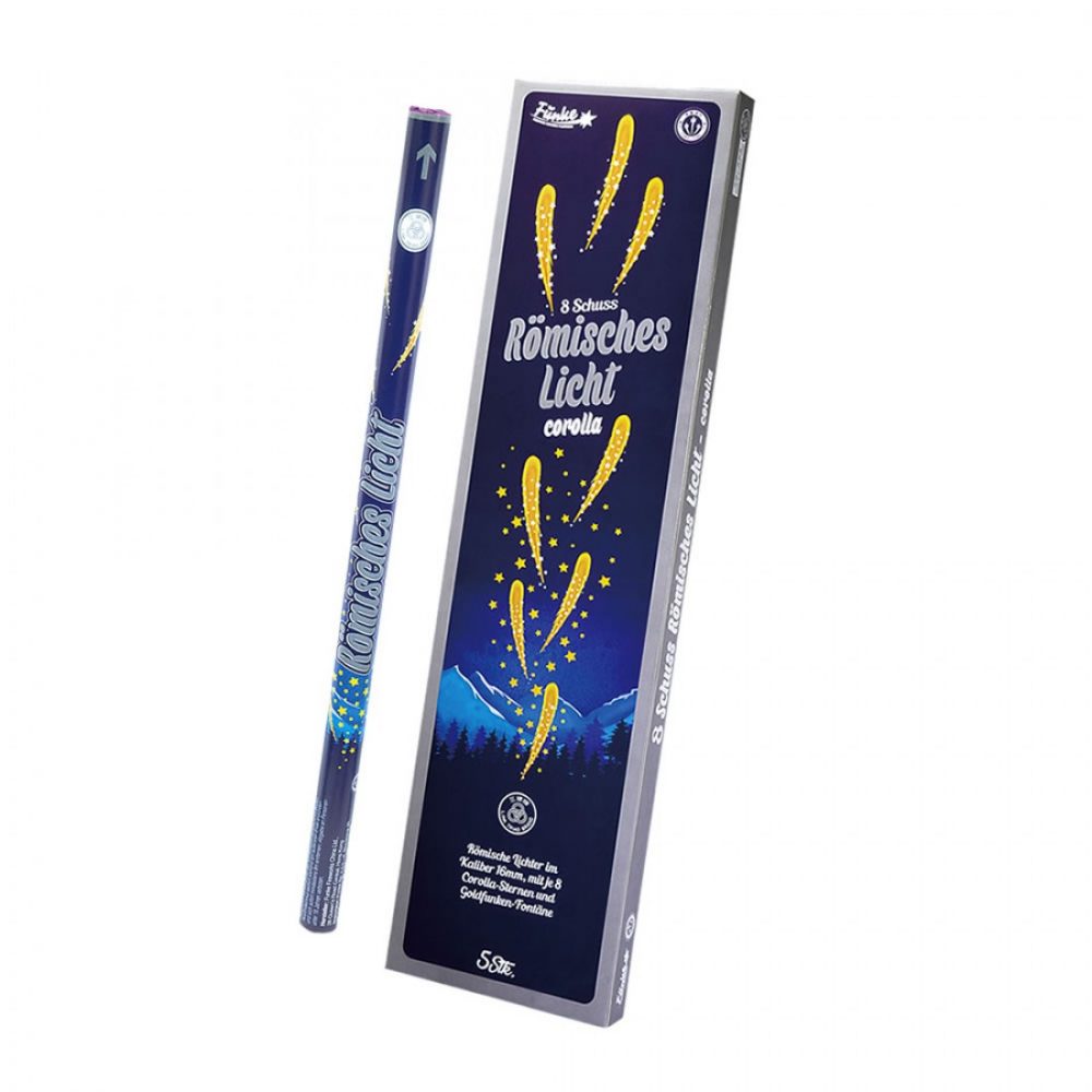 Funke Römisches Licht Corolla im Kaliber 16mm mit 8 Corollasternen und Goldfunken Fontäne. Wunderschön!
