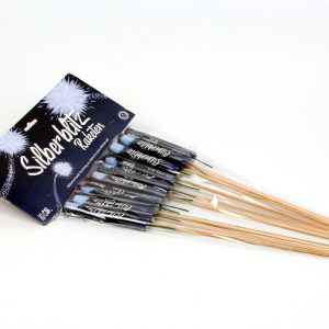 10 Silberblitz Raketen von Funke mit Silberschweif-Aufstieg zu Silberfunken-Blitzknall.