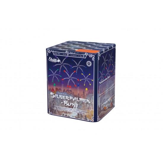 Die Silberpalmen Bunt ist eine große 25 Schuss Batterie von Funke Fireworks mit 500g Nettomasse.