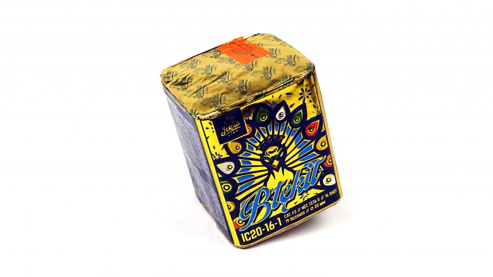 Die Blekit ist eine 16 Schuss Batterie im Kaliber 20mm aus der Iskra Line von Funke Fireworks.
