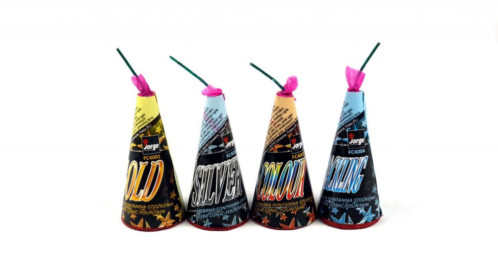Das Vulkansortiment FC4001-4 besteht aus der kleinsten Version der klassischen vier Vulkane von Jorge. Enthalten sind die Effekte Gold, Silber, Color und Crackling.