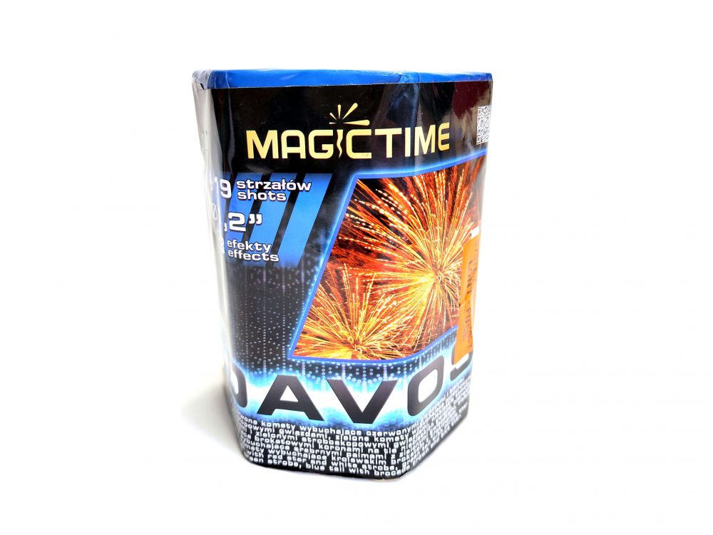 Die Davos ist eine große 19 Schuss Batterie von aus der Magictime Serie vom Importeur Kometa. Weiße und rote Blinker sowie Silberweiden mit blauen Sternen.
