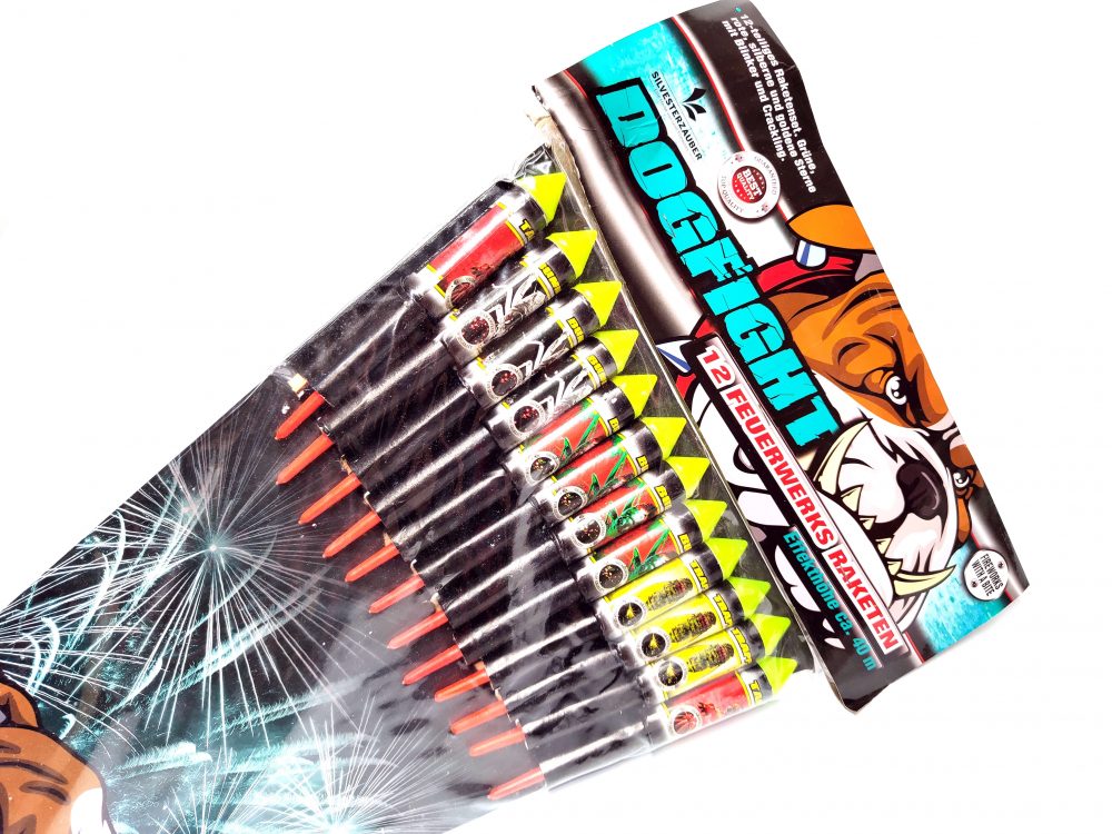 Das Dogfight ist ein großes Raketensortiment von Lesli Silvesterzauber mit 12 Bombenraketen.