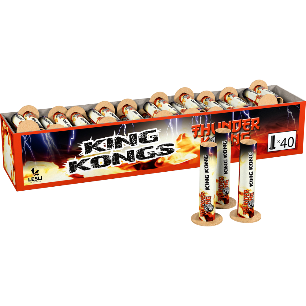 40er Sortiment King Kongs von Lesli aus der Thunderkong Serie. Crackling Feuertöpfe in der Großpackung!