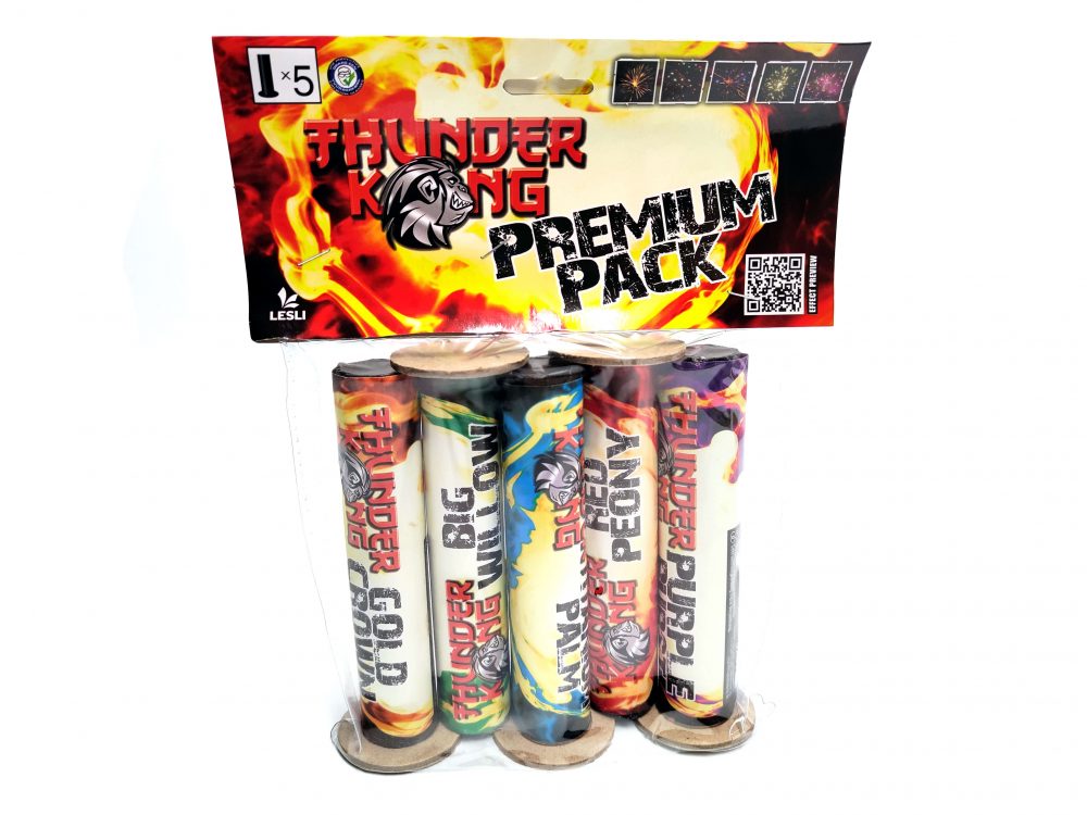 5er Sortiment Thunderkong Premium Pack von Lesli Silvesterzauber. Schöne Effekt Single Shots mit fünf unterschiedlichen Effekten.