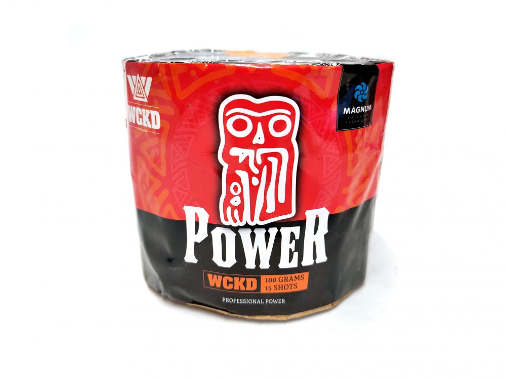 Die Power ist eine 15 Schuss Batterie aus der WCKD Serie von Magnum Feuerwerk. Goldener Aufstieg zu Brokatweiden mit intensiven weißen Blinkern.