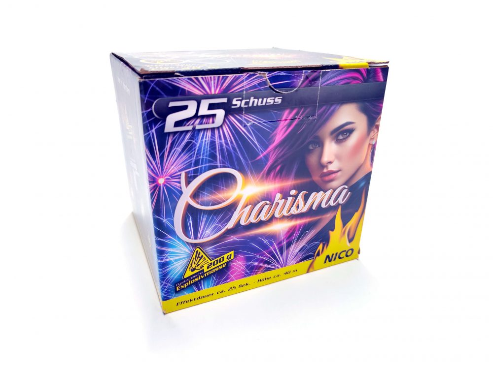 Die Charisma ist eine 25 Schuss Batterie und eine Neuheit 2025 von Nico Feuerwerk aus Berlin.