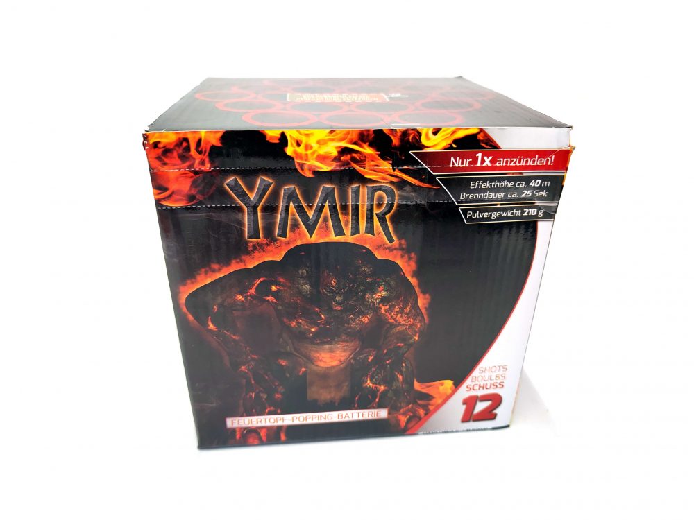 Die Ymir ist eine fette 12 Schuss Batterie von Pyroart im Kaliber 30mm. Rote Päonien mit Goldpopping.
