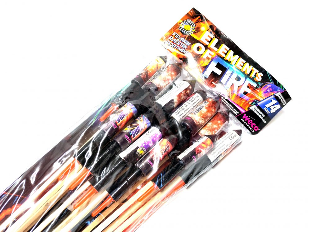 Das Elements of Fire ist ein Sortiment mit 14 Raketen von Weco Feuerwerk.