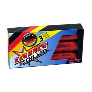 Weco Kanonenschlag Groß 3er. 3er Packung zylindrische Kanonenschläge in der größten Ausführung, aus deutscher Herstellung.