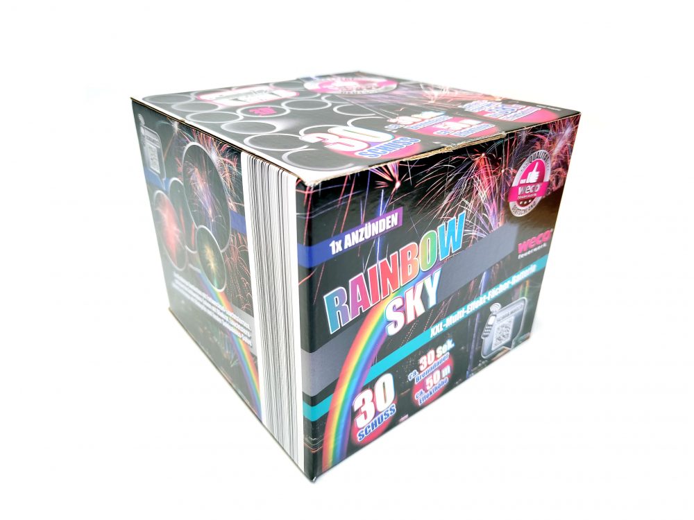 Die Rainbow Sky ist eine 30 Schuss Batterie von Weco Feuerwerk mit 381,00g Nettomasse.