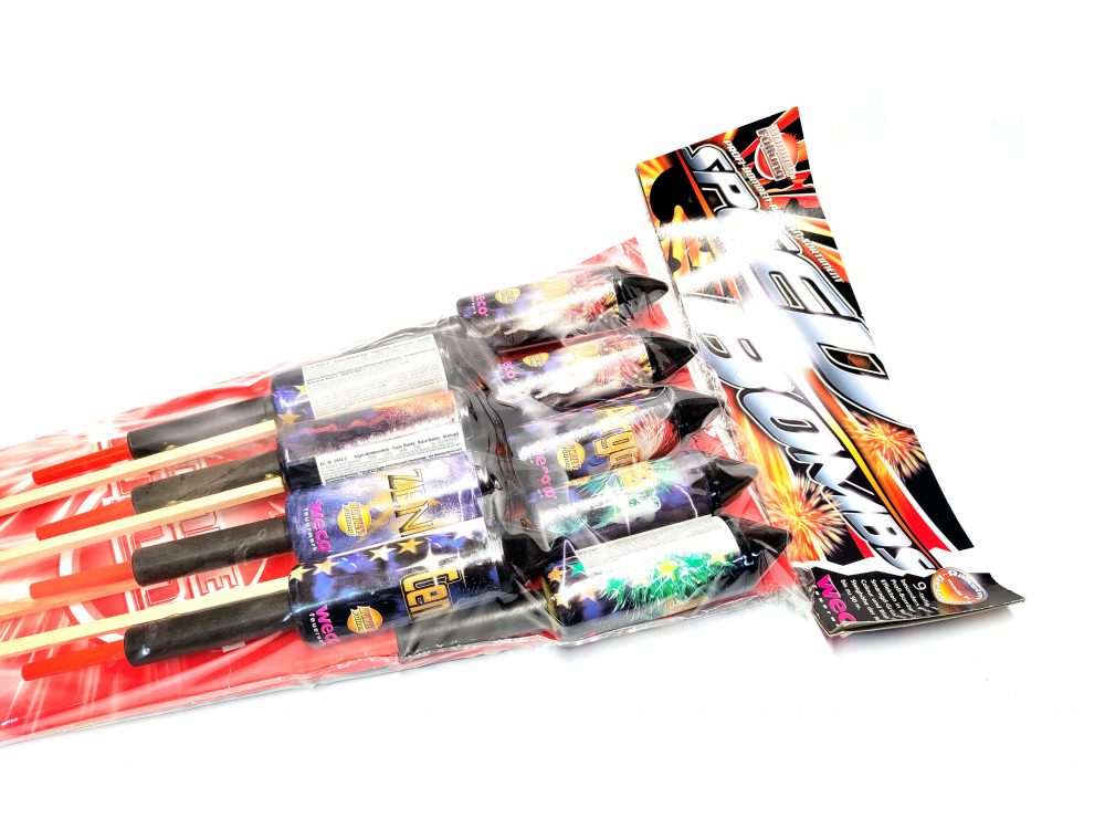 Älteres Raketensortiment von Weco Feuerwerk, das Speed Bombs mit 9 großen Bombenraketen.