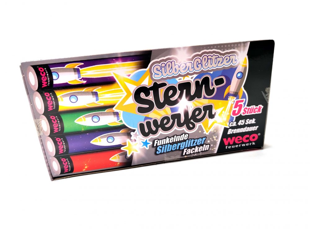 5er Packung Sternwerfer Silber von Weco Feuerwerk. Sehr schöne und edle Handfontänen für alle ab 12 Jahren.