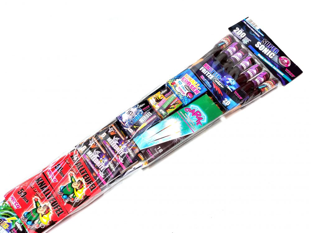 Das Supersonic ist ein schönes Familiensortiment von Weco Feuerwerk. Enthalten sind unter anderem 7 Raketen, Chinakracher und sehr viel Jugendfeuerwerk.