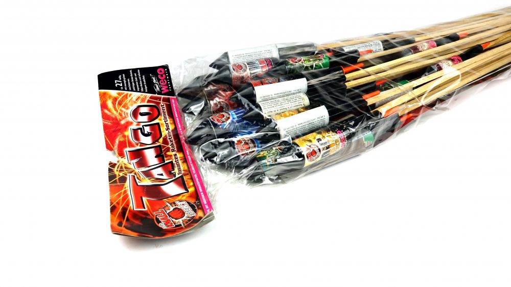 Großes Raketensortiment Tango von Weco Feuerwerk mit unter anderem sehr großen Juwel Raketen.