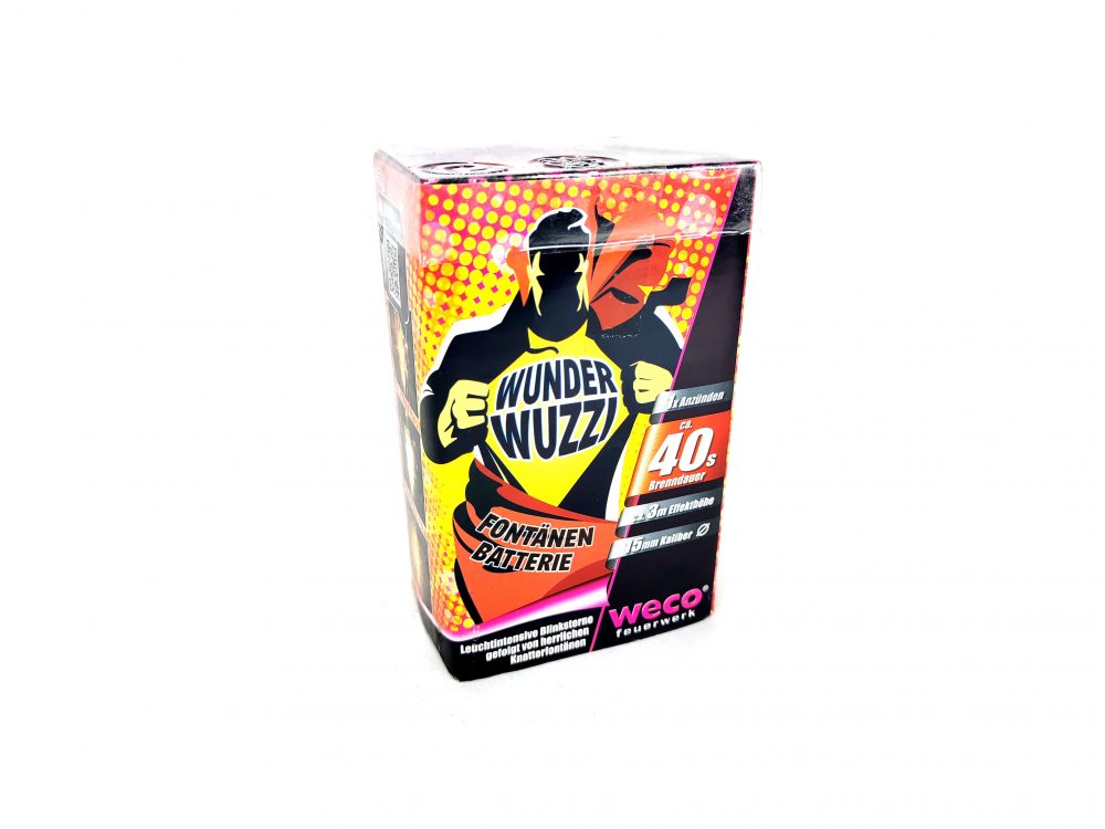 Die Wunder Wuzzi ist eine Fontänenbatterie mit Blinkern und Knistersternen von Weco Feuerwerk. Die Brenndauer beträgt ungefähr 40 Sekunden.
